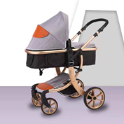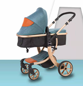 鋁合金車架,高景觀雙向推,四輪減震PU輪,可躺可坐,購(gòu)物籃,